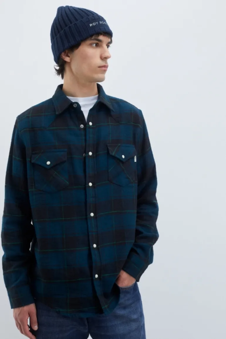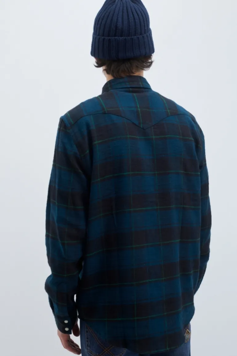 Camicia Martin in tessuto check washed. Chiusura sul fronte con bottoni a pressione. Tasche sul petto con patta e bottone di chiusura. Polsini con bottoni. Micro label Roy Roger’s applicata su una tasca. Regular fit. COMPOSIZIONE: 100% COTONE.