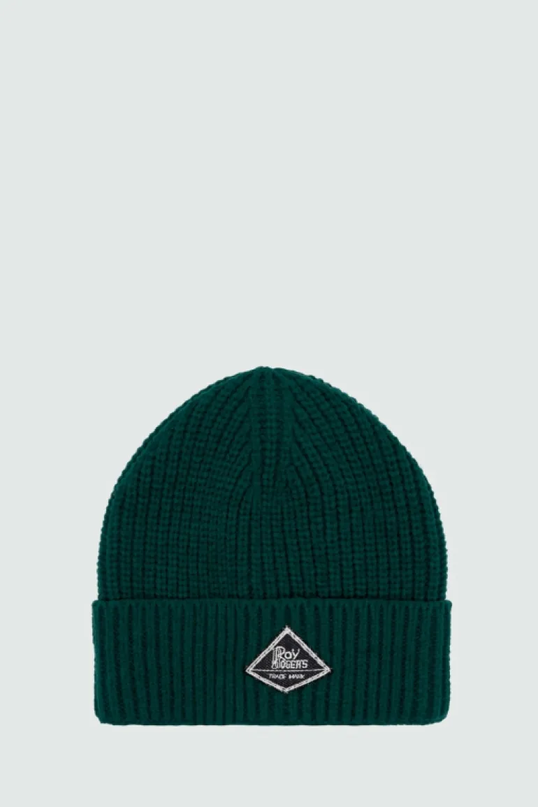 Cappello Beanie in maglia a coste tinta unita. Fondo con maxi reverse e patch Roy Roger’s in denim applicata. COMPOSIZIONE: 100% ACRILICO.