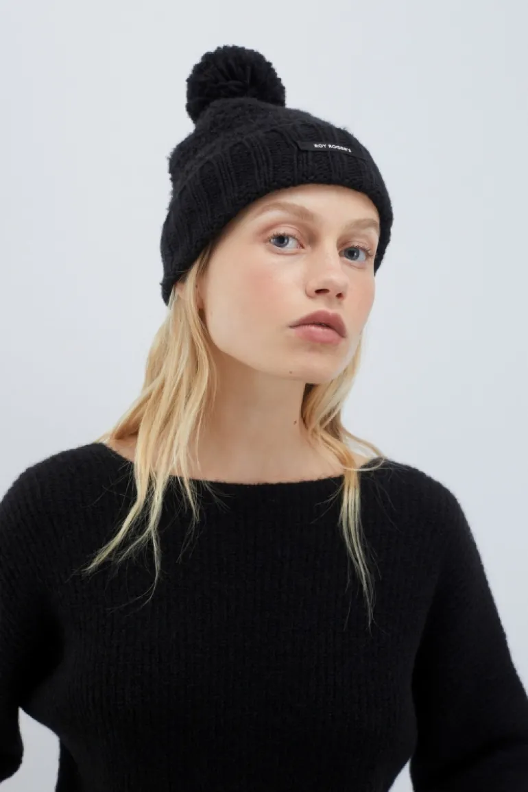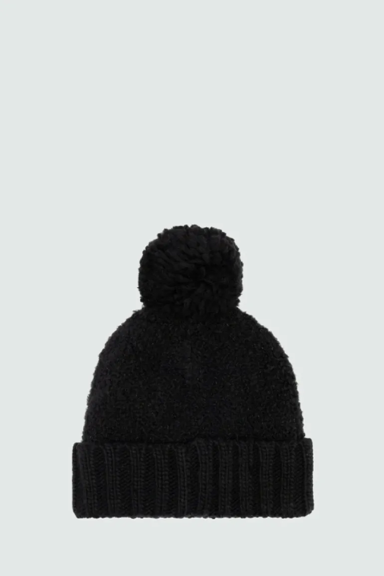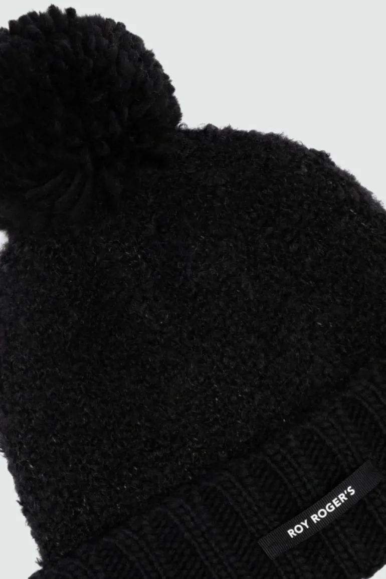 Cappello Beanie in lana bouclè tinta unita. Pon pon superiore in tono. Fondo con maxi reverse a coste e label Roy Roger’s applicata. COMPOSIZIONE: 57% POLIESTERE 28% ACRILICO 12% LANA 3% FIBRA DI GOMMA.