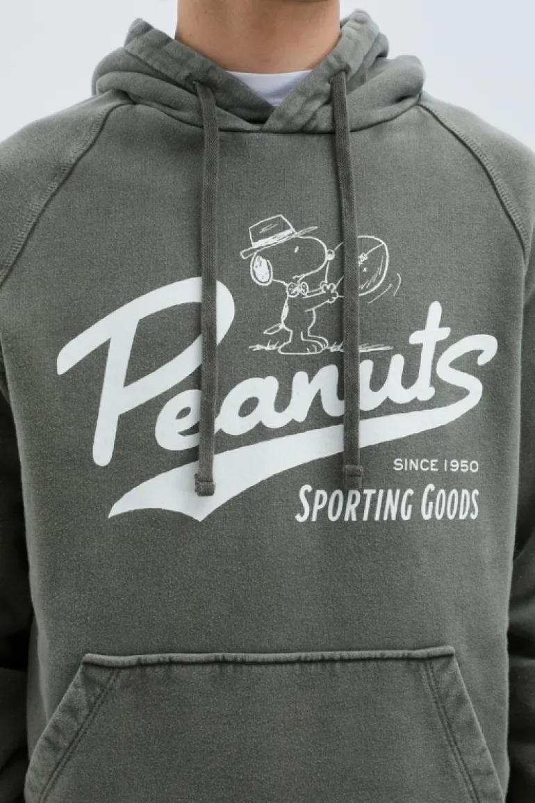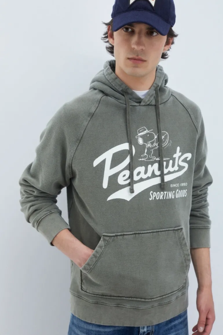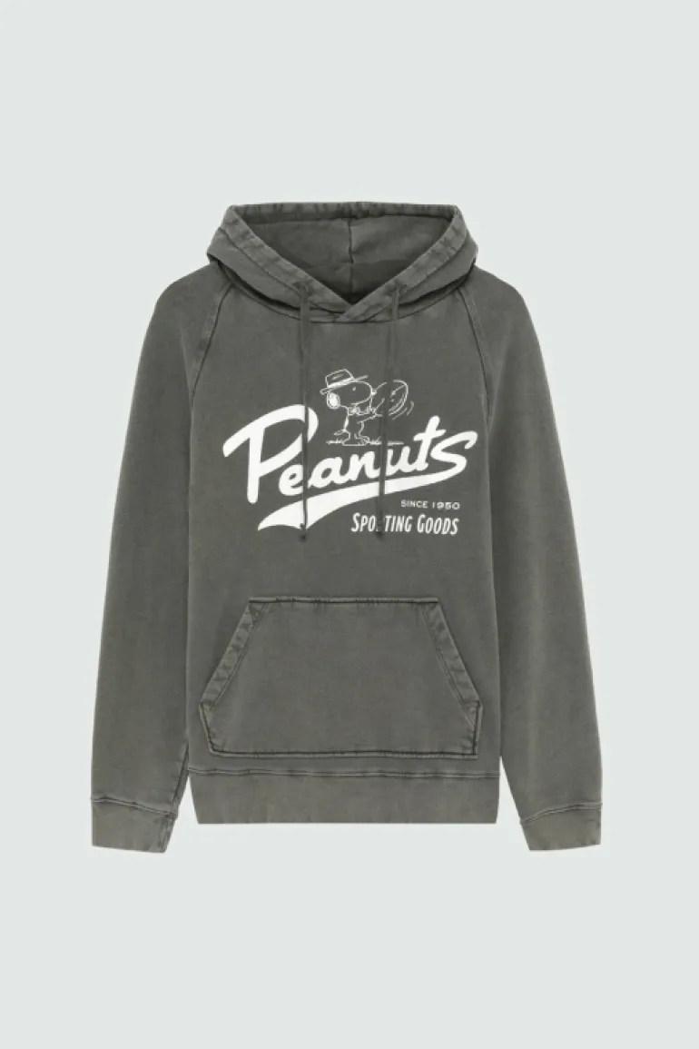 Felpa nata dalla collaborazione tra Roy Roger’s e Peanuts in cotone washed. Cappuccio in tono regolabile con coulisse. Stampa Roy Roger’s x Peanuts Sporting Goods sul fronte. Tasca centrale con doppia apertura laterale. Fondo e polsini a costine. Interno in cotone felpato. Regular fit. COMPOSIZIONE: 100% COTONE.
