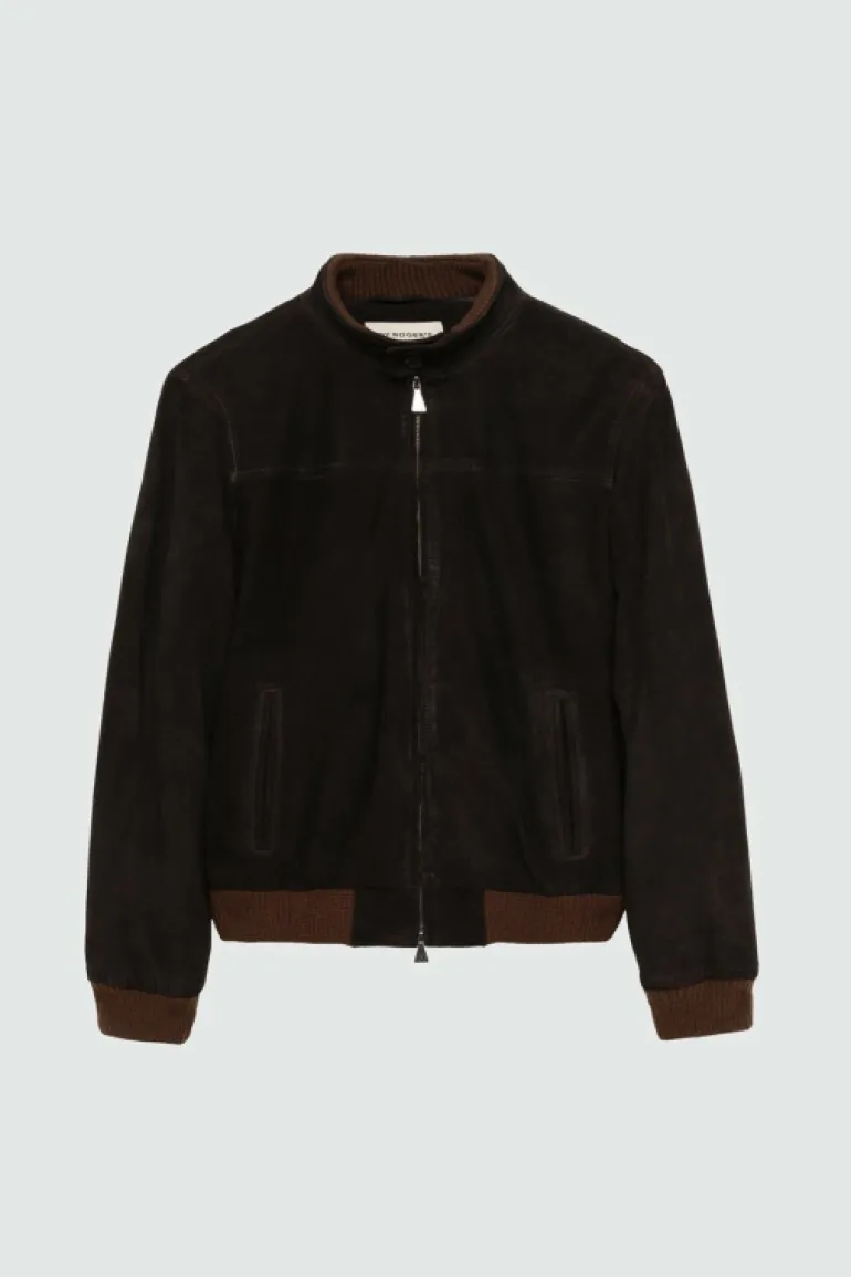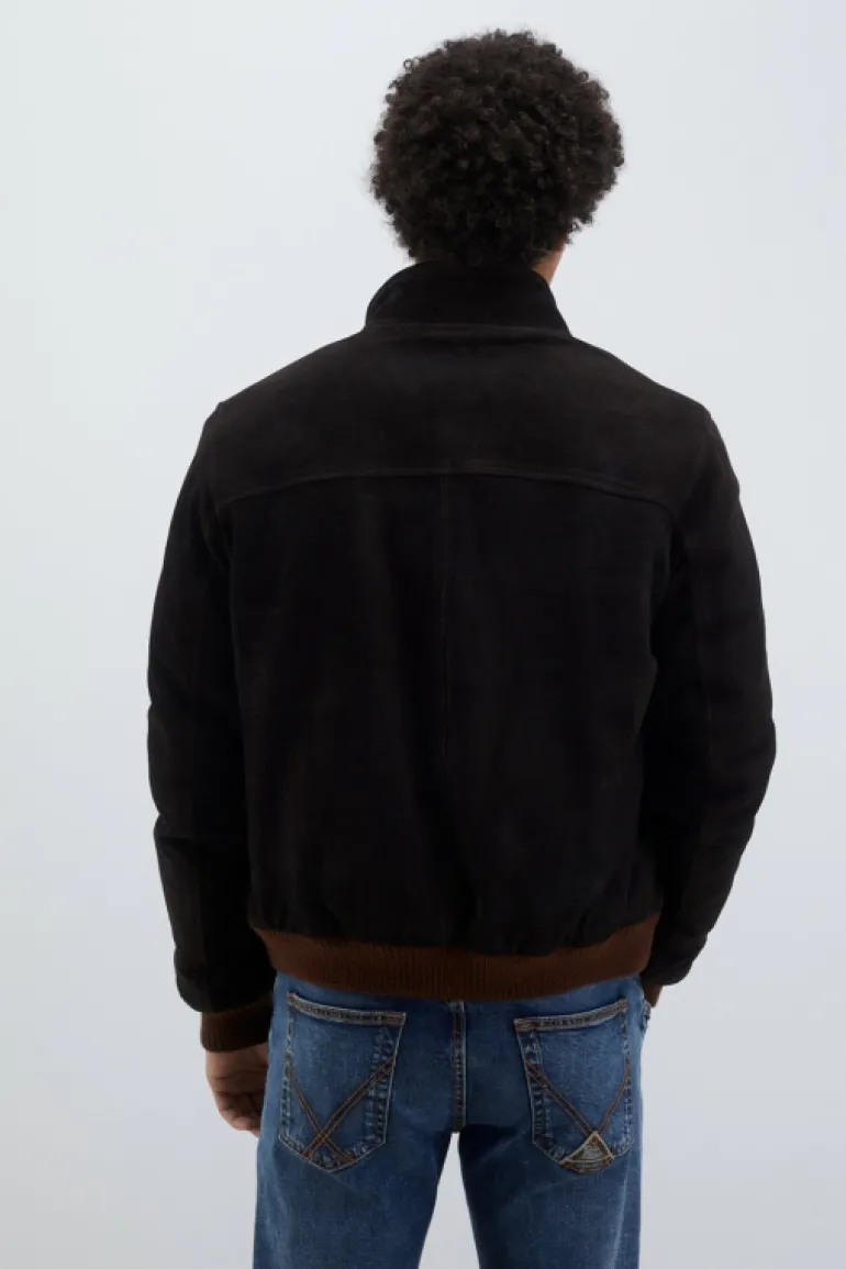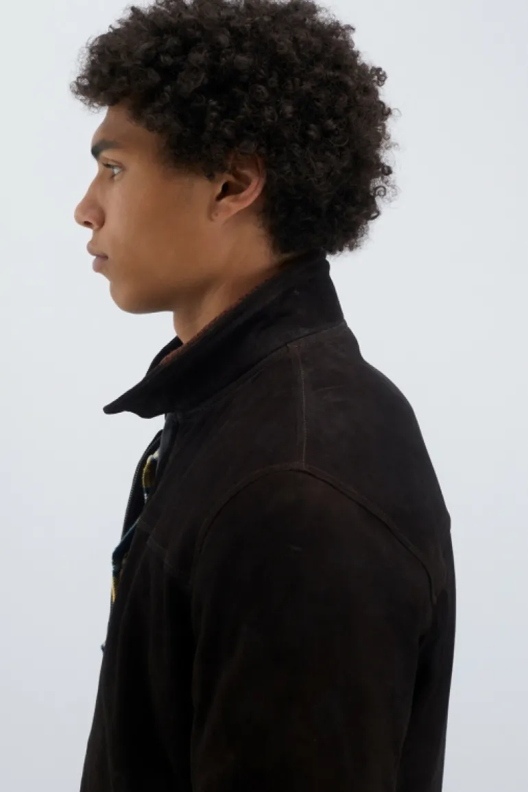 Giacca Brando in suede tinta unita. Colletto a imbuto con interno in maglia a costine. Chiusura con due bottoni sul collo e zip a doppio cursore con tirazip logato. Maniche lunghe e polsini in maglia in tono. Tasche a filetto sul fronte. Fondo in maglia a costine in tono. Fodera in tessuto tartan. Regular fit. COMPOSIZIONE: 100% PELLE.