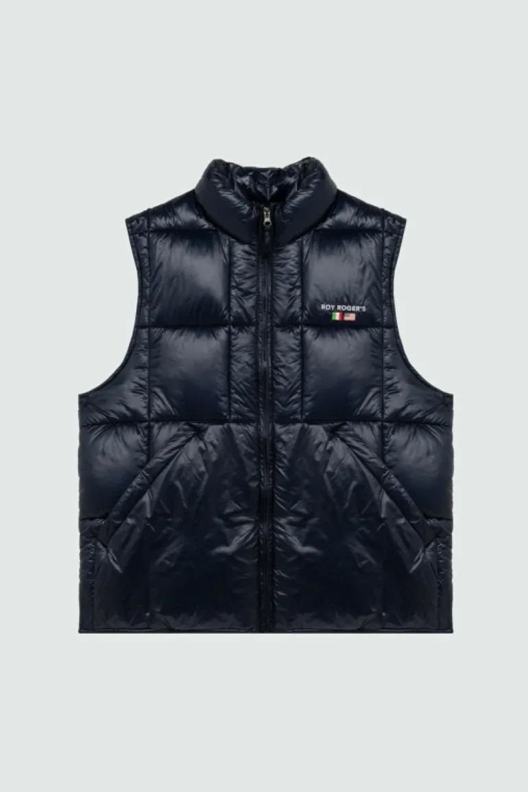 Gilet in nylon ripstop tinta unita trapuntato a coste. Colletto a imbuto. Chiusura con zip. Tasche oblique sul fronte. Ricamo Roy Roger’s sul peto. Regular fit. COMPOSIZIONE: 100% NYLON.