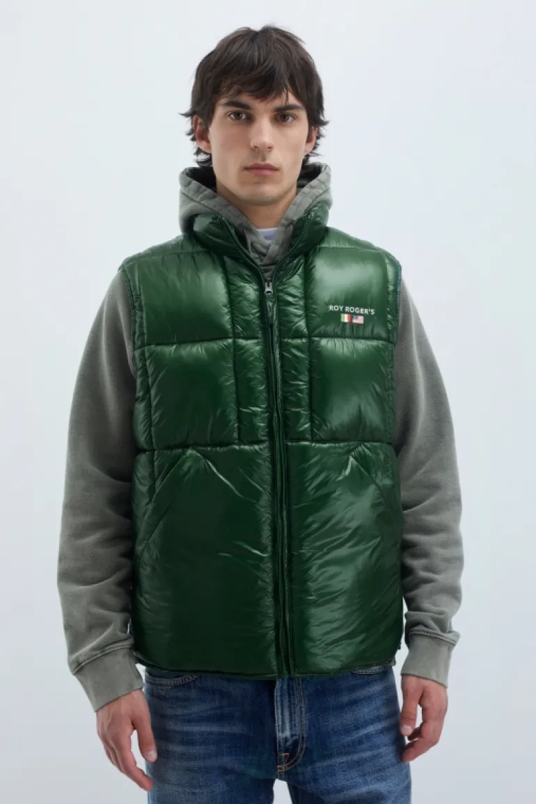 Gilet in nylon ripstop tinta unita trapuntato a coste. Colletto a imbuto. Chiusura con zip. Tasche oblique sul fronte. Ricamo Roy Roger’s sul petto. Regular fit. COMPOSIZIONE: 100% NYLON.