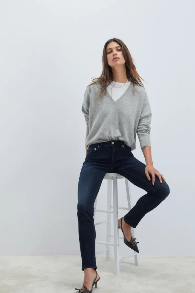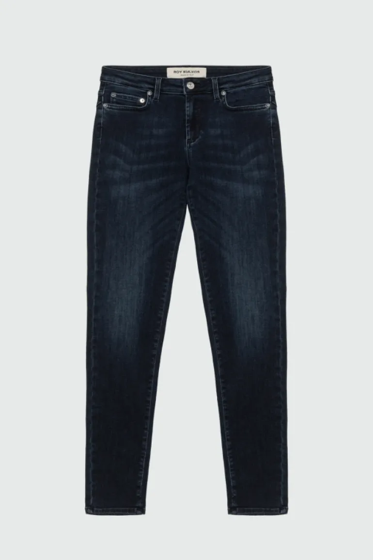 Jeans push up in denim stretch con lavaggio scuro. Leggero effetto used sul fronte. Vita media con passanti. Chiusura con bottone logato e zip. Due tasche sul fronte e due tasche sul retro con label Roy Roger’s applicata. Skinny fit. COMPOSIZIONE: 93% COTONE 5% POLIESTERE 2% ELASTAN.