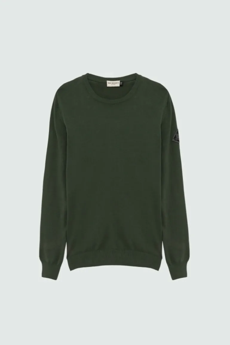 Maglia girocollo in cotone winter tinta unita. Maniche lunghe. Collo, polsini e fondo a costine. Patch Roy Roger’s in denim applicata su una manica. Regular fit. COMPOSIZIONE: 100% COTONE.