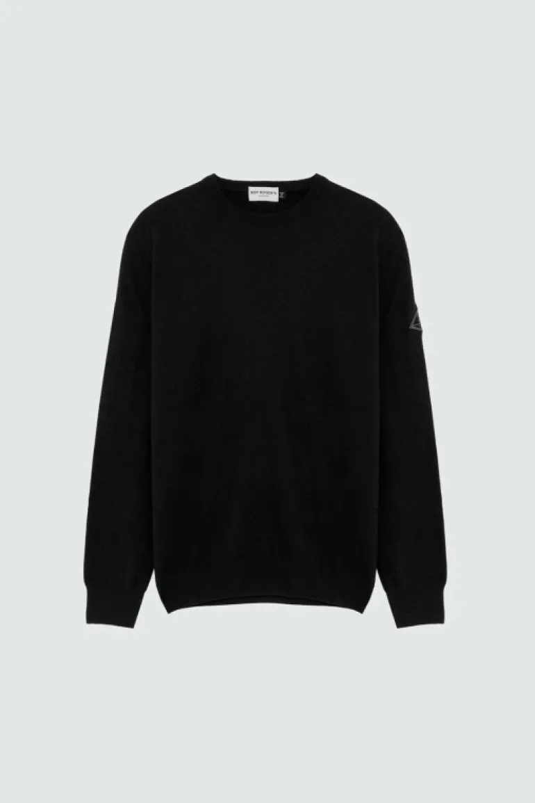 Maglia girocollo in lana e cashmere tinta unita. Maniche lunghe raglan. Collo, polsini e fondo a costine. Patch Roy Roger’s in denim applicata su una manica. Regular fit. COMPOSIZIONE: 45% LANA 25% VISCOSA 25% NYLON 5% CASHMERE.