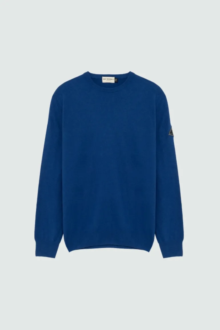 Maglia girocollo in lana e cashmere tinta unita. Maniche lunghe raglan. Collo, polsini e fondo a costine. Patch Roy Roger’s in denim applicata su una manica. Regular fit. COMPOSIZIONE: 45% LANA 25% VISCOSA 25% NYLON 5% CASHMERE.