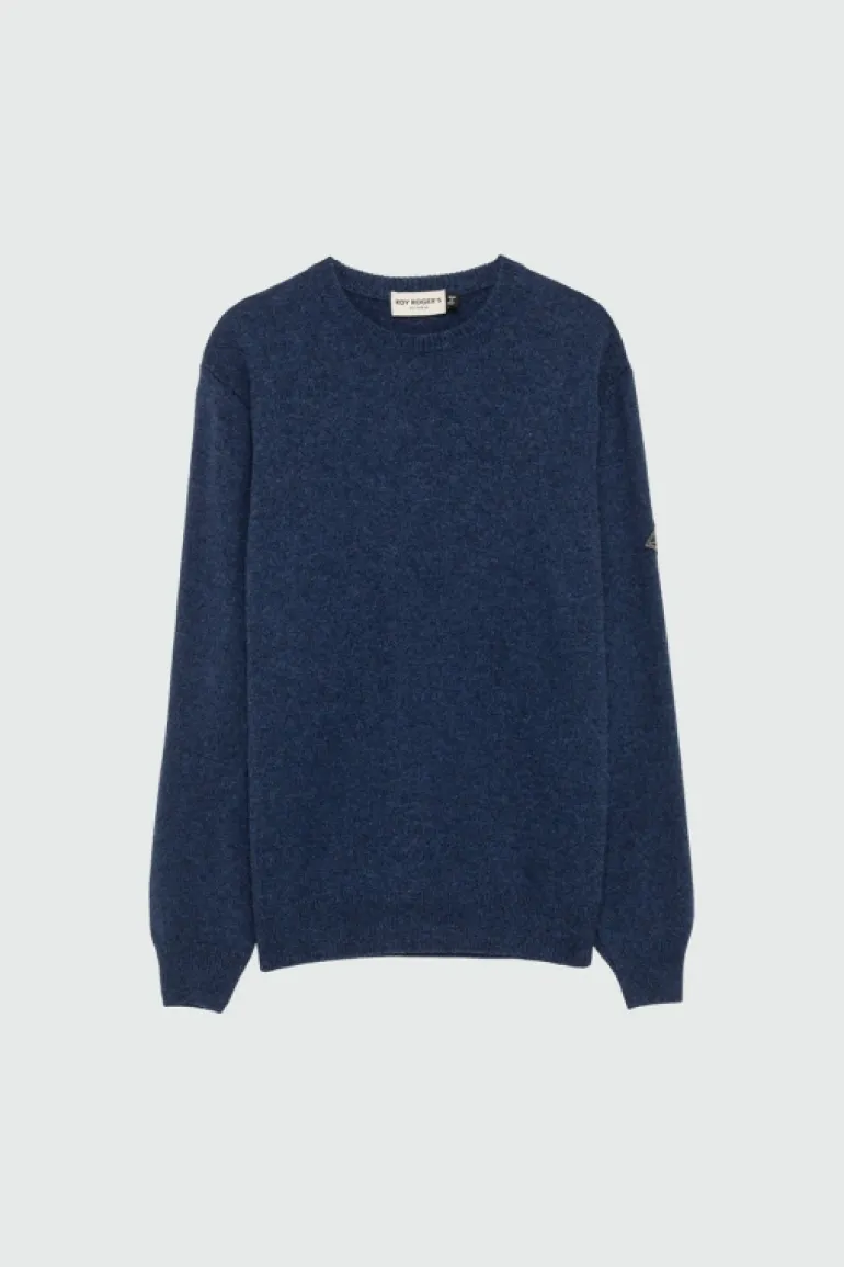 Maglia girocollo in lana e cashmere tinta unita. Maniche lunghe. Collo, polsini e fondo a costine. Patch Roy Roger’s in denim applicata su una manica. Regular fit. COMPOSIZIONE: 45% LANA 25% VISCOSA 25% NYLON 5% CASHMERE.
