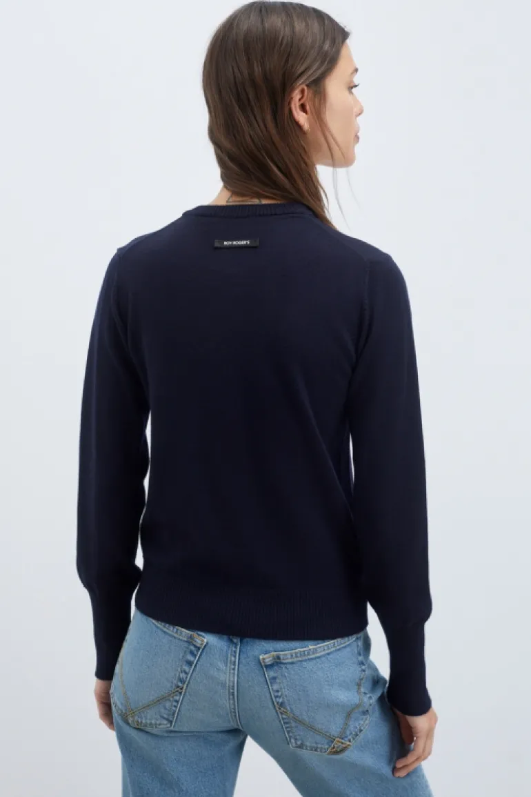 Maglia girocollo in lana tinta unita. Maniche lunghe raglan. Collo, polsini e fondo a coste. Label Roy Roger’s applicata sul fondo. Regular fit. COMPOSIZIONE: 100% LANA
