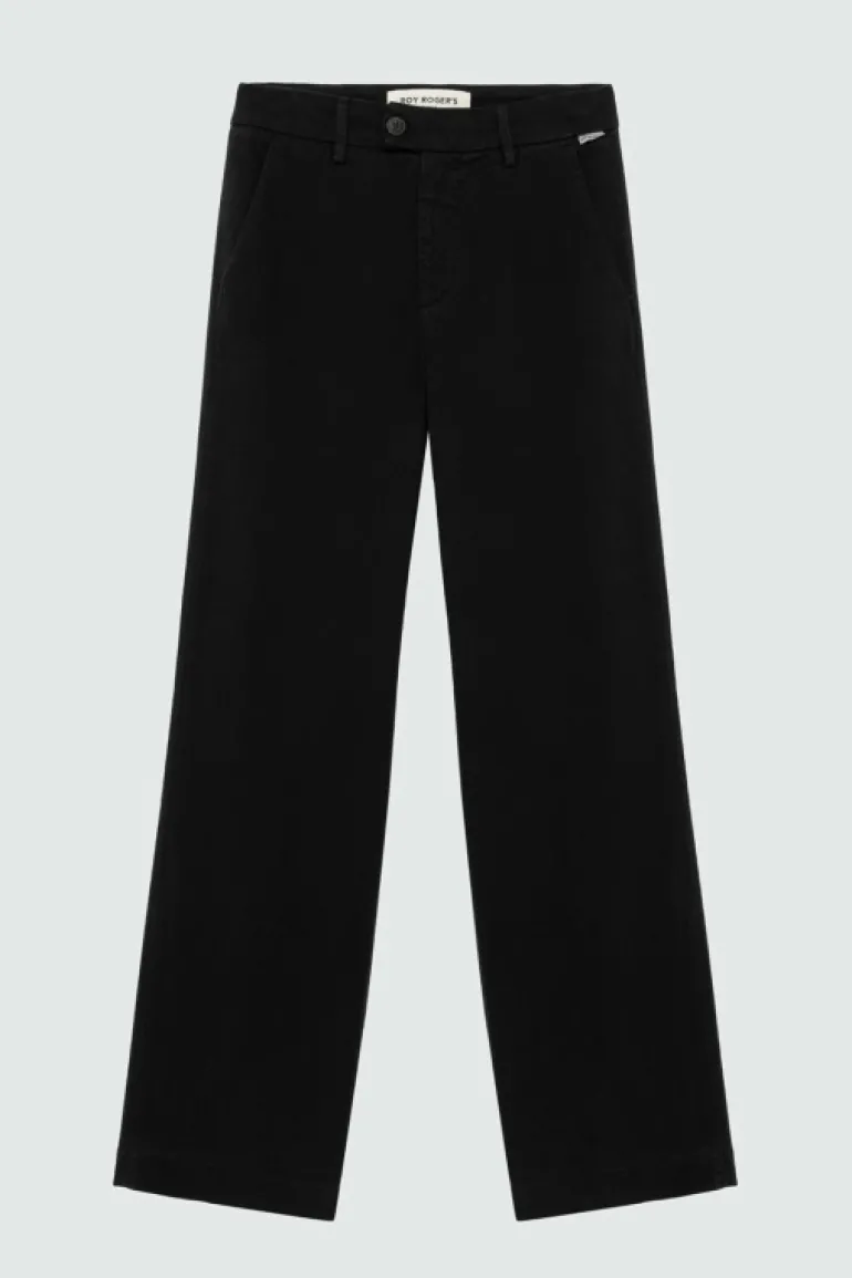 Pantalone Lais in tessuto soft tinta unita. Vita media con passanti. Chiusura con bottone logato asimmetrico e zip. Tasche all’americana sul fronte e tasche a filetto sul retro con bottone logato. Micro label Roy Roger’s applicata in vita di lato. Flare fit. COMPOSIZIONE: 49% COTONE 49% LYOCELL 2% ELASTAN.