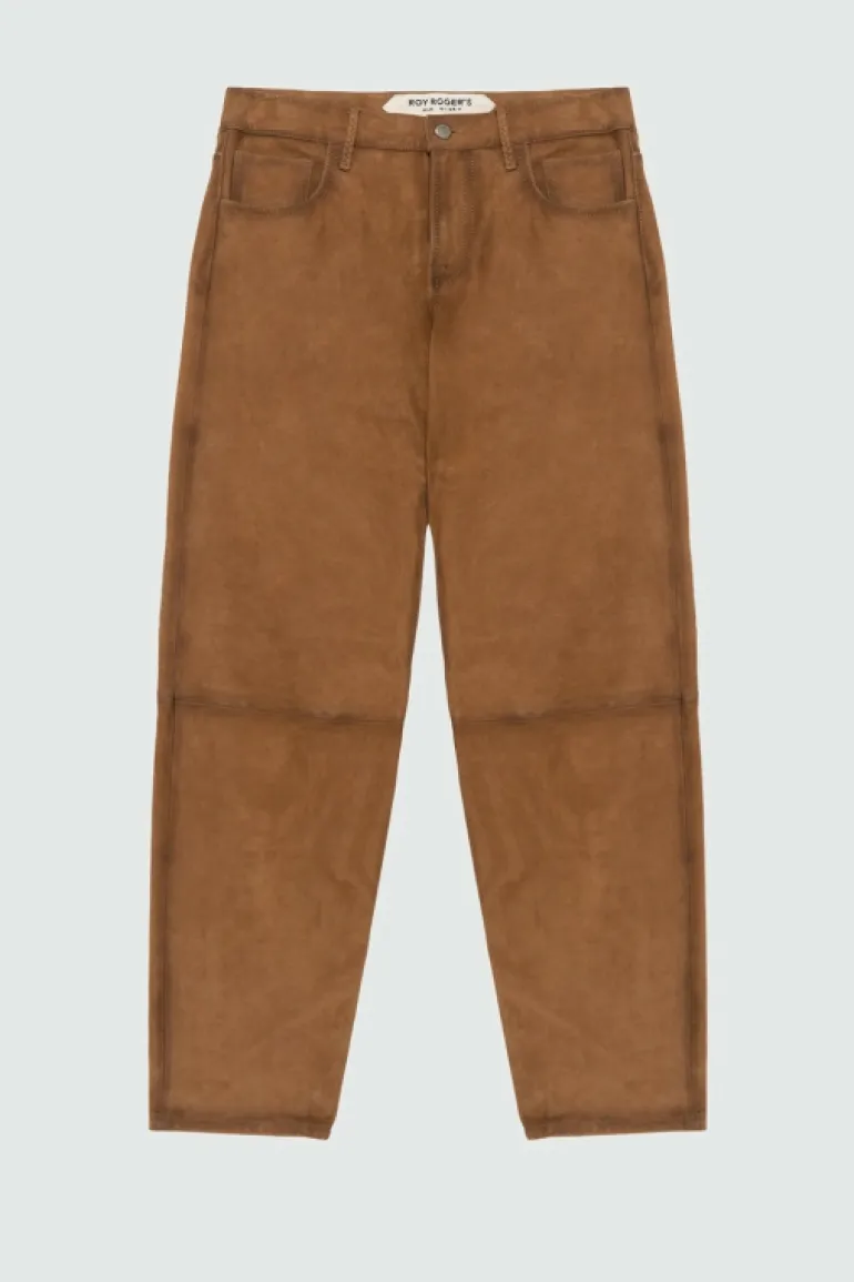 Pantalone Sofia in suede vintage tinta unita. Vita media con passanti intrecciati e label Roy Roger’s applicata sul retro. Chiusura con bottone logato e zip. Due tasche sul fronte e due tasche sul retro con label Roy Roger’s applicata. Relaxed fit. COMPOSIZIONE: 100% PELLE.
