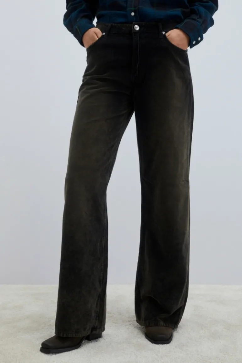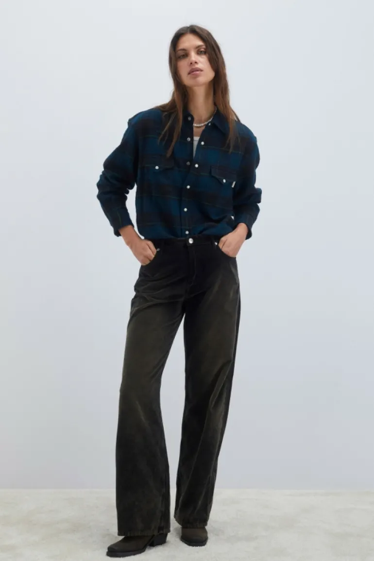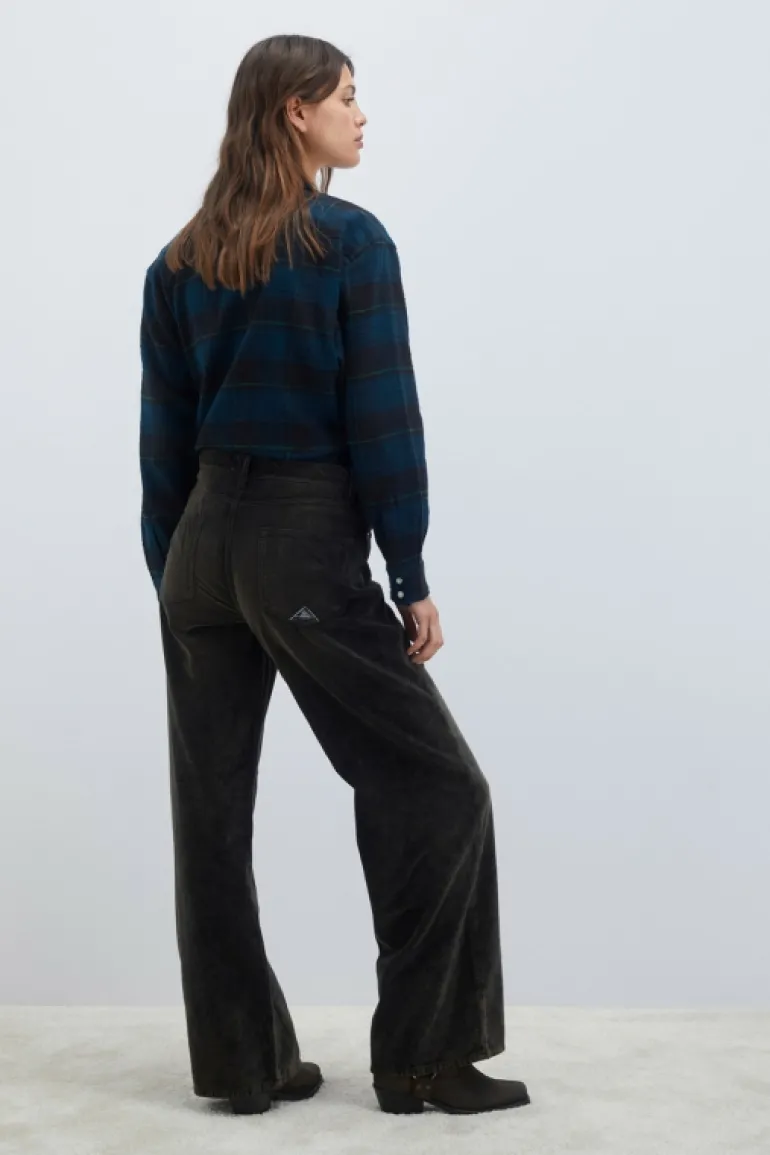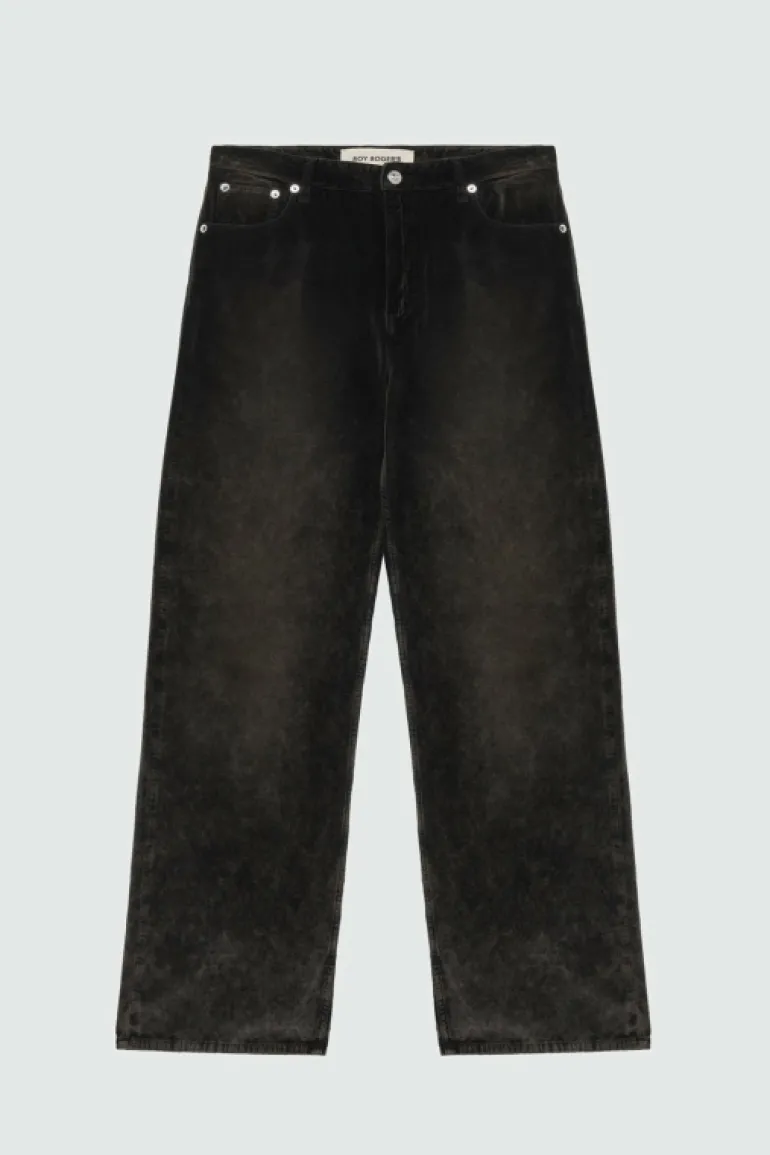 Pantalone in velluto liscio con effetto washed. Vita media con passanti. Chiusura con bottone logato e zip. Due tasche sul fronte e due tasche sul retro con label Roy Roger’s applicata. Wide fit. COMPOSIZIONE: 100% COTONE.