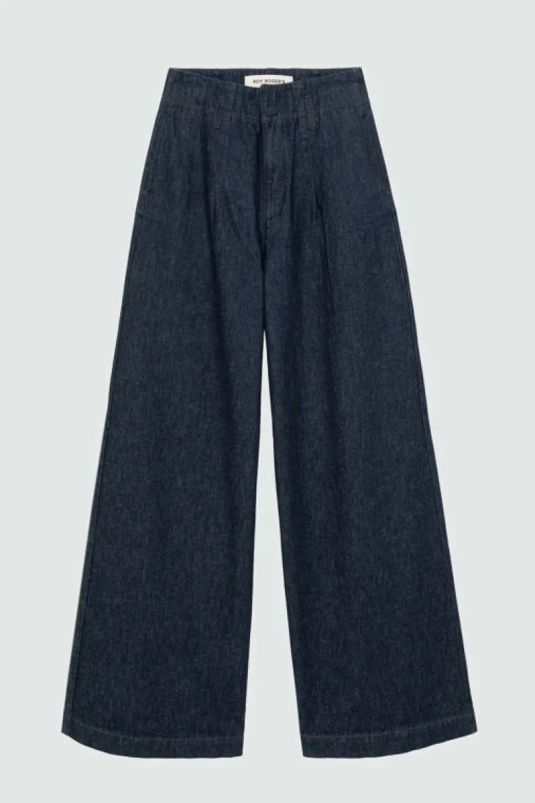 Pantalone in denim rinse con lavaggio scuro. Vita media con passanti. Chiusura con gancio interno in vita e zip. Pences sul fronte. Tasche laterali a filo e tasche sul retro con label Roy Roger’s applicata. Flare fit svasata sul fondo. COMPOSIZIONE: 100% COTONE.