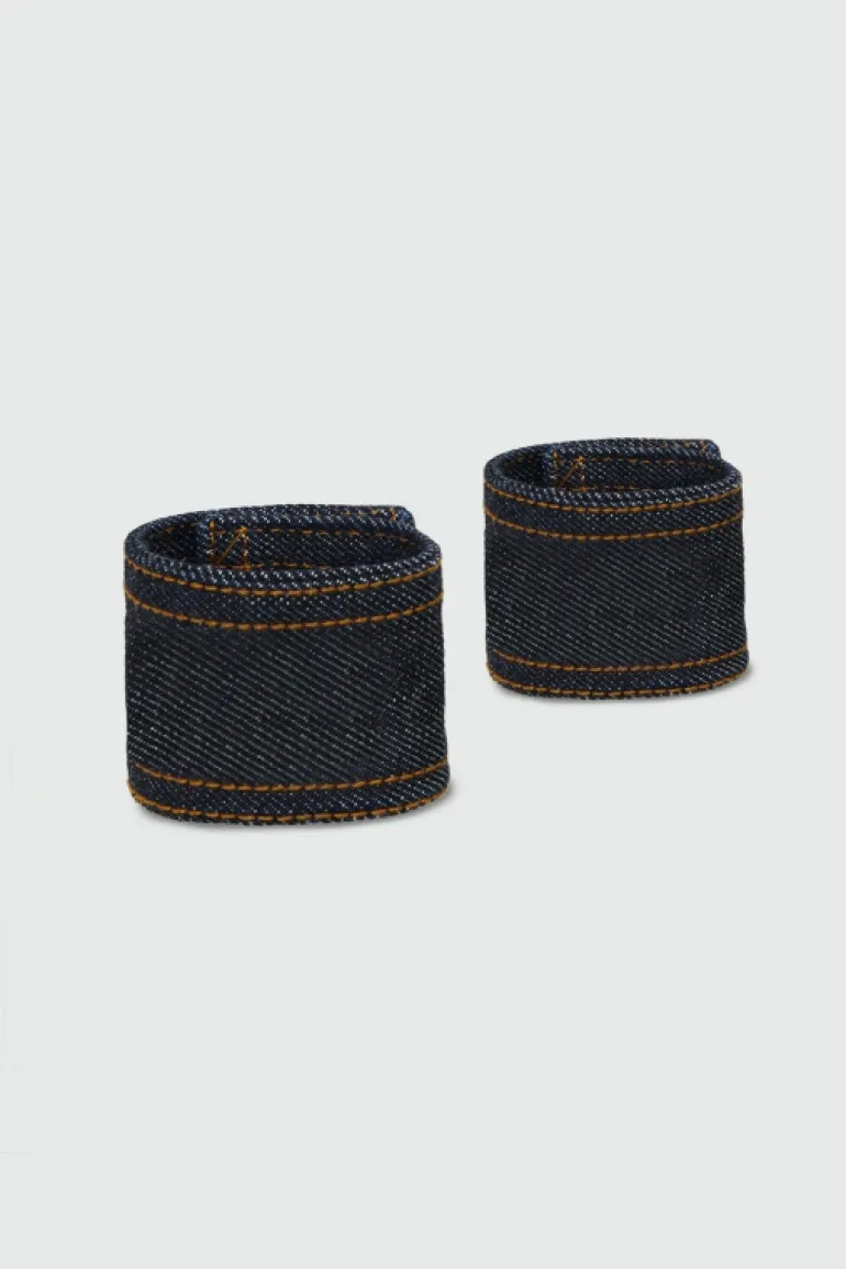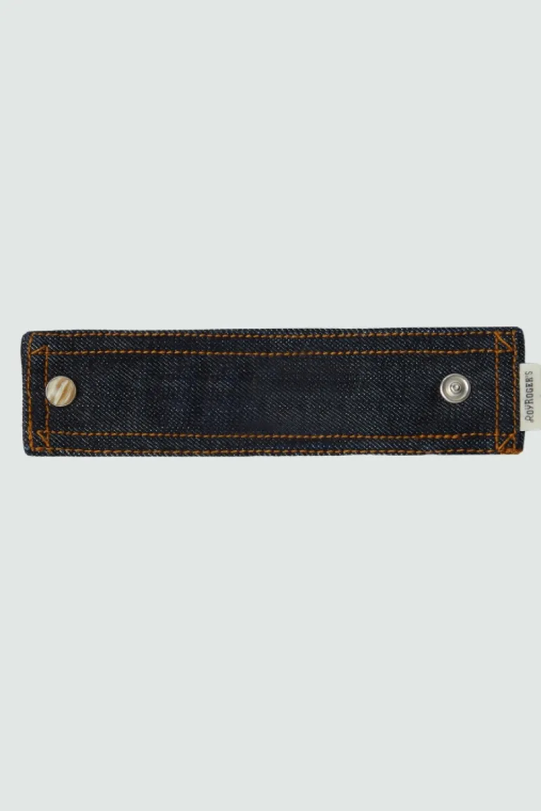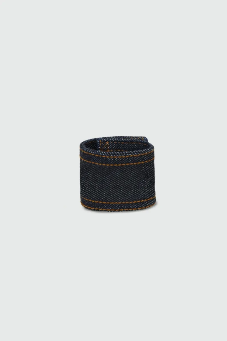 Portatovagliolo realizzato in iconico denim con lavaggio scuro ed impunture in contrasto.Chiusura sul retro con bottone a pressione. COMPOSIZIONE: 100% COTONE.