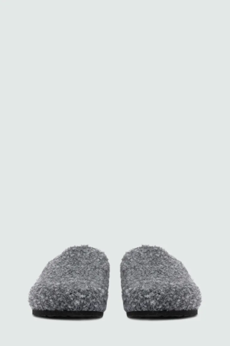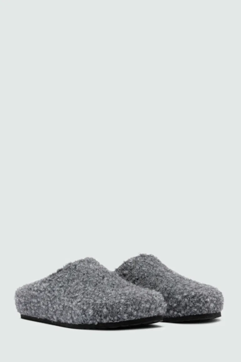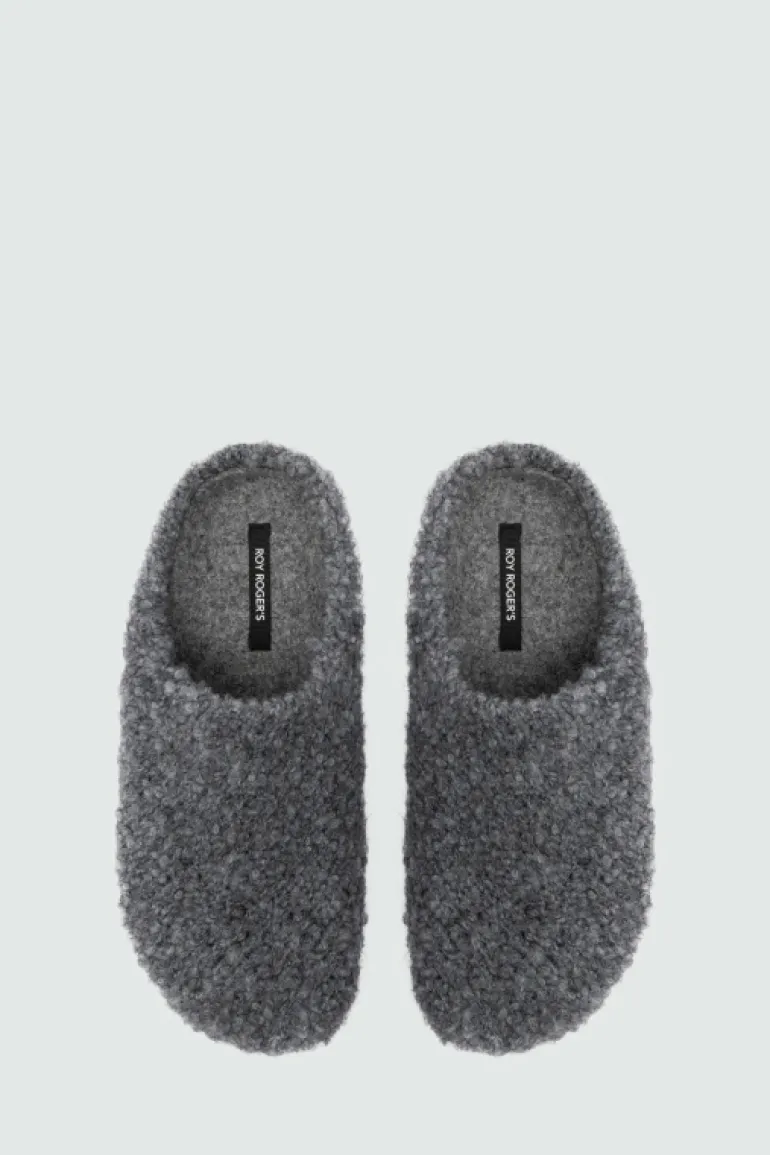 Sleepers in lana bouclè tinta unita. Interno in lana e sottopiede in feltro in tono. Label Roy Roger’s applicata all’interno. Suola in gomma texturizzata. COMPOSIZIONE: 50% ACRILICO 22% MOHAIR 16% POLIAMMIDE 10% LANA 2% ELASTAN.
