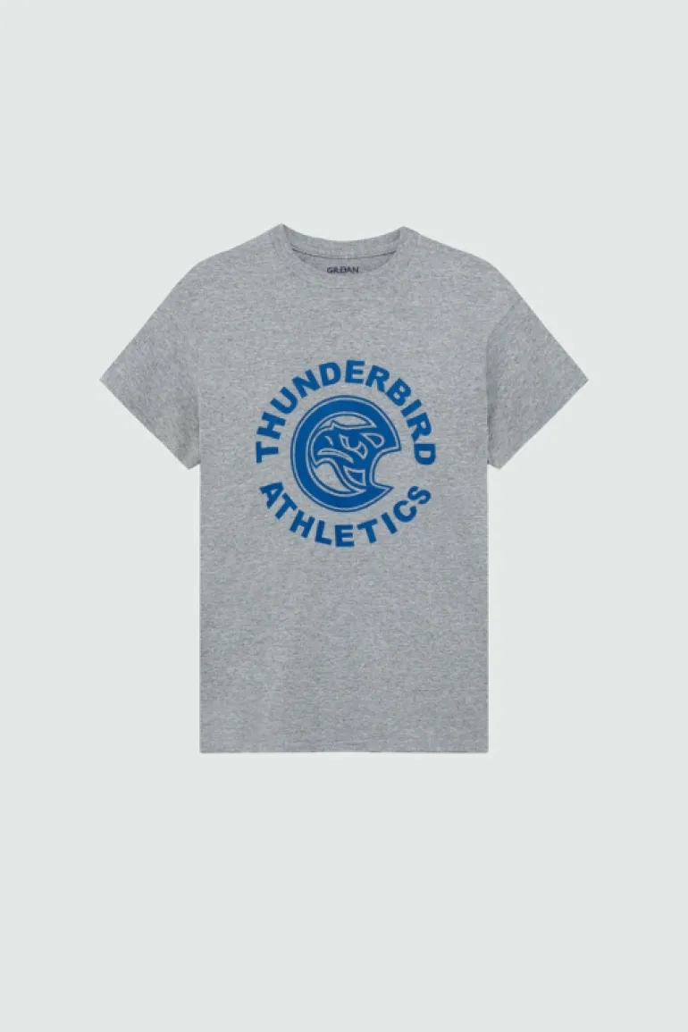 T-shirt girocollo vintage originale in cotone melange. Maniche corte ad aletta. Stampa Thunderbird sul fronte. Capo accuratamente igienizzato e ricondizionato, unico nel suo genere, pertanto eventuali imperfezioni sono da considerarsi pregi e non difetti. Regular fit. COMPOSIZIONE: 50% COTONE 50% POLIESTERE.