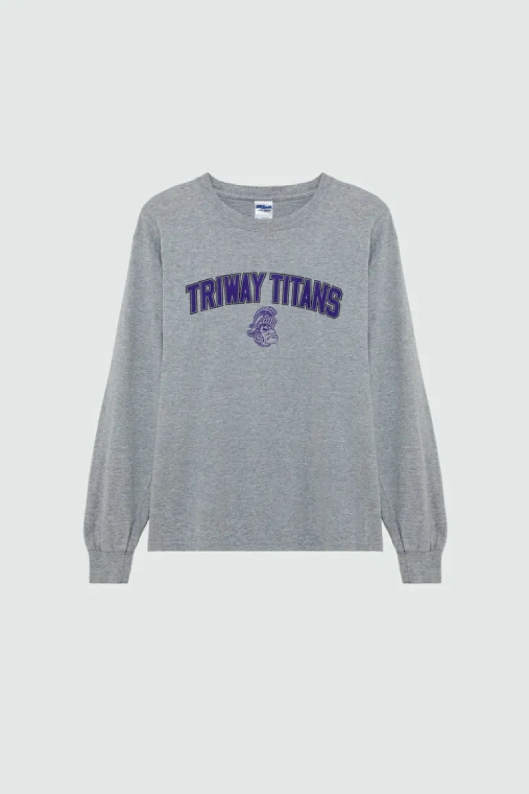 T-shirt girocollo vintage originale in cotone melange. Maniche lunghe e polsini a costine. Stampa Triway Titans sul fronte. Capo accuratamente igienizzato e ricondizionato, unico nel suo genere, pertanto eventuali imperfezioni sono da considerarsi pregi e non difetti. Regular fit. COMPOSIZIONE: 90% COTONE 10% POLIESTERE.
